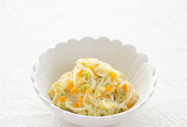 Mì somen mềm mịn kết hợp cùng tôm tươi giàu đạm và rau củ sẽ mang đến cho bé một bữa ăn dặm vừa ngon vừa đủ chất. Tôm giúp bổ sung canxi, hỗ trợ phát triển xương, trong khi rau củ cung cấp chất xơ và vitamin giúp hệ tiêu hóa khỏe mạnh. Cách nấu mì somen cho bé cũng rất đơn giản, mẹ chỉ cần thực hiện theo các bước: