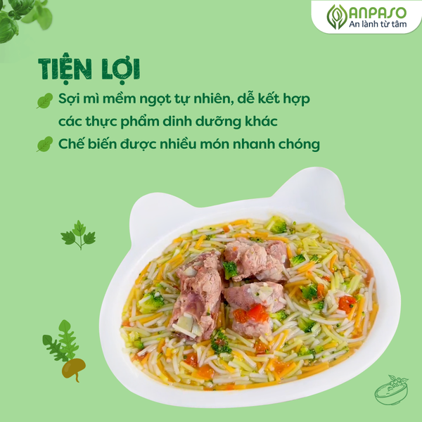Trong giai đoạn ăn dặm, việc lựa chọn thực phẩm phù hợp cho bé luôn là mối quan tâm hàng đầu của ba mẹ. Với mong muốn mang đến những bữa ăn an toàn, dinh dưỡng và tiện lợi, mì somen cho bé Anpaso ra đời, trở thành giải pháp hoàn hảo cho các mẹ trong hành trình tập cho bé làm quen với thực phẩm thô.